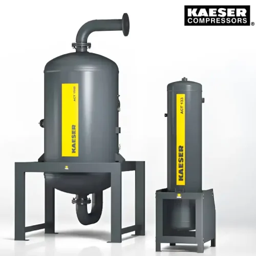 - Hấp phụ Kaeser ACT có khoảng thời gian thay thế rất dài nhờ kích thước rộng rãi và động lực dòng chảy tối ưu thông qua than hoạt tính hiệu quả cao. Chúng cũng được gắn trong một khung thép bảo vệ và bền.