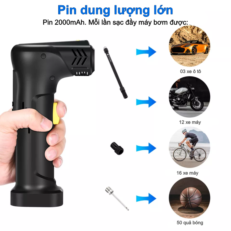 | Ứng dụng | Bơm lốp xe đạp, lốp xe máy, lốp ô tô, bóng, v.v. |